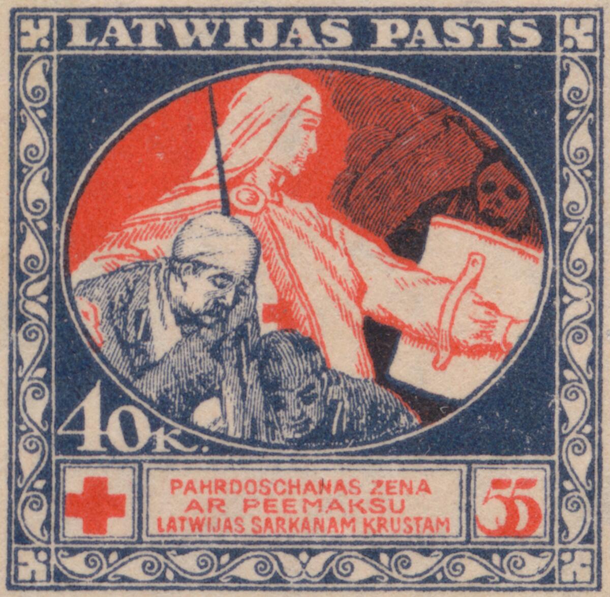 Märke Röda Kors från Lettland, 1920. Motiv av Lettiskt "Röda Kors märke". Tryckt på baksidan av en sedel