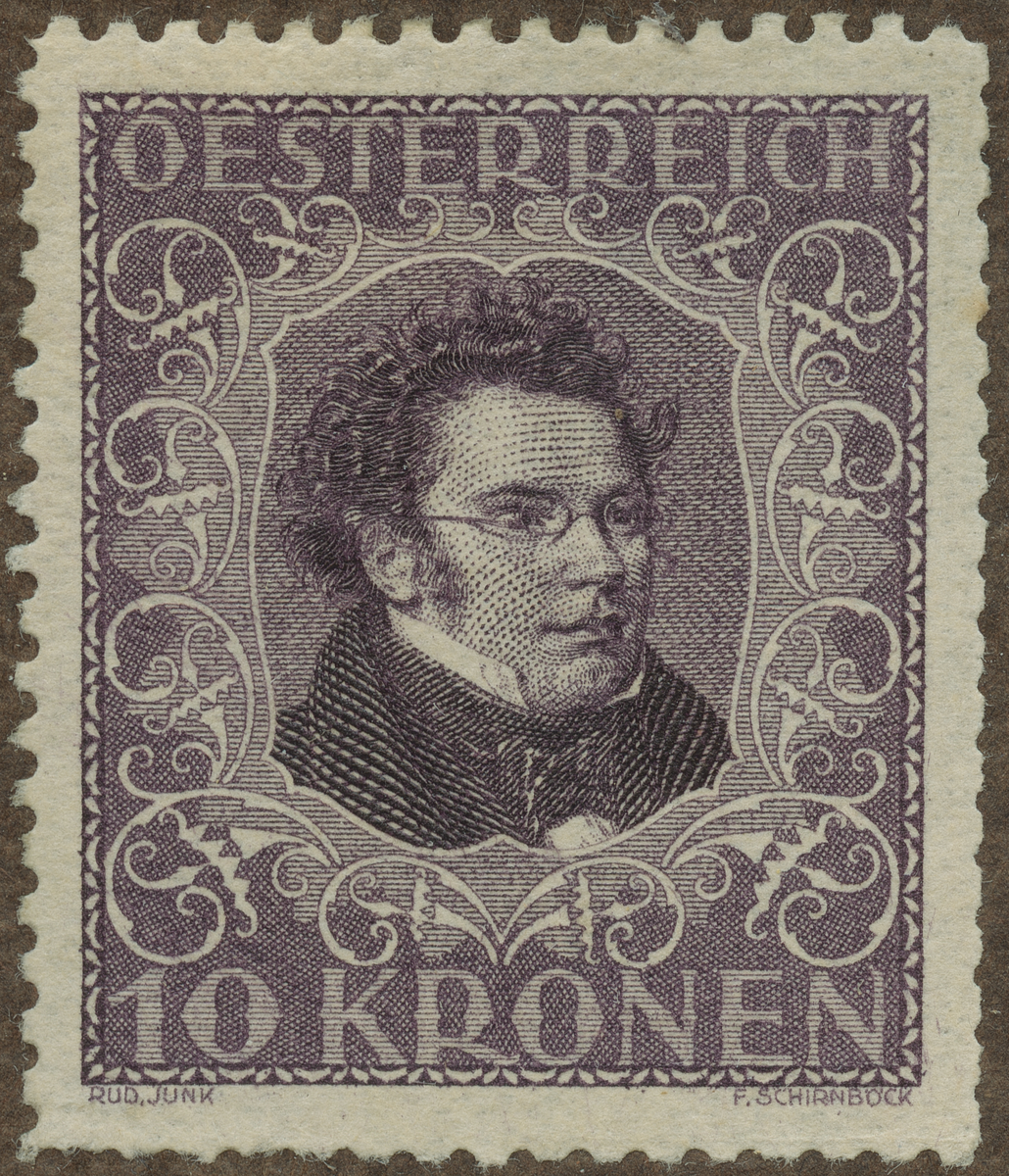Frimärke från Österrike, 1922. Motiv av Franz Peter Schubert 1797-1828 Kompositör