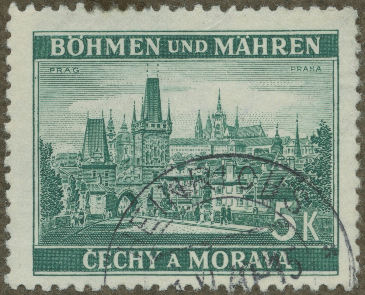 Frimärke från Böhmen-Mähren, 1939. Motiv av Karls-Bron i Prag