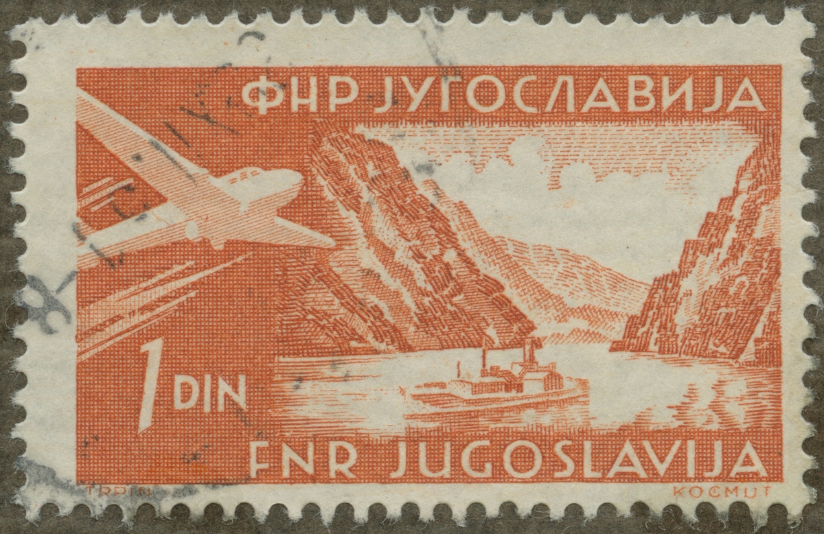 Frimärke från Jugoslavien, 1951. Motiv av Ångare Järnporten i Donau