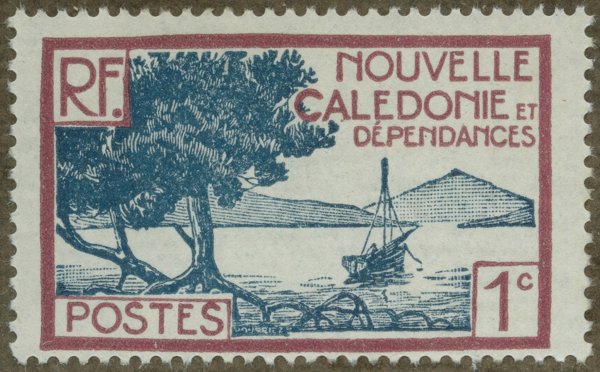 Frimärke från Nya Caledonien, 1926. Motiv av Hamnen vid Paletuviers Nya Caledonien