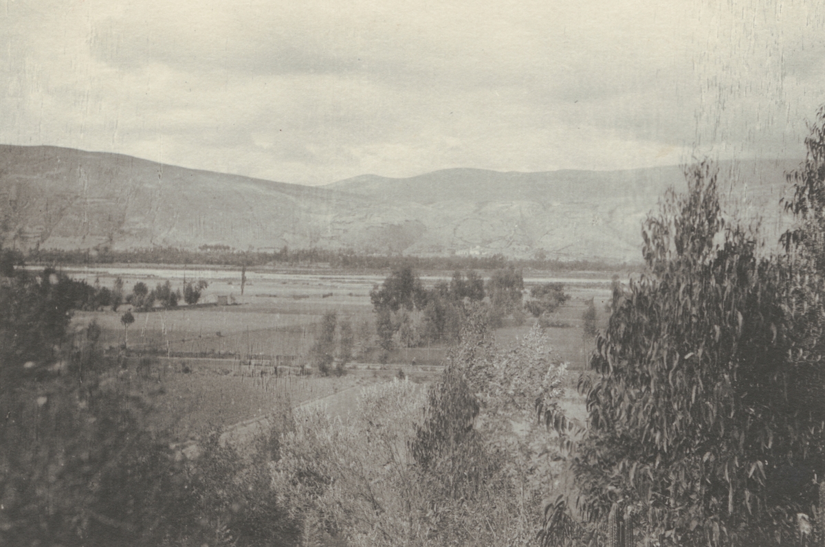 Fotografi från kuvert märkt med "Ernst Nordenskjöld". Vy över buskigt bergslandskap.