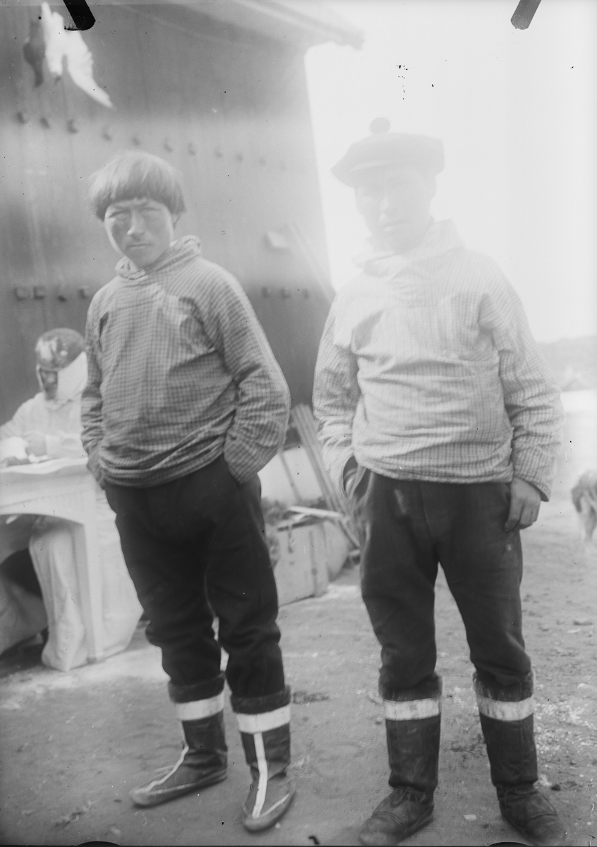 Glasnegativ med motiv av två män som tittar in i kameran.