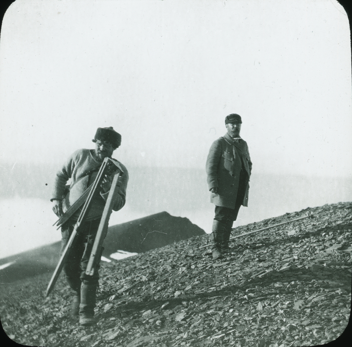 Fotografi från expedition till Spetsbergen. Motiv av två män på berg.