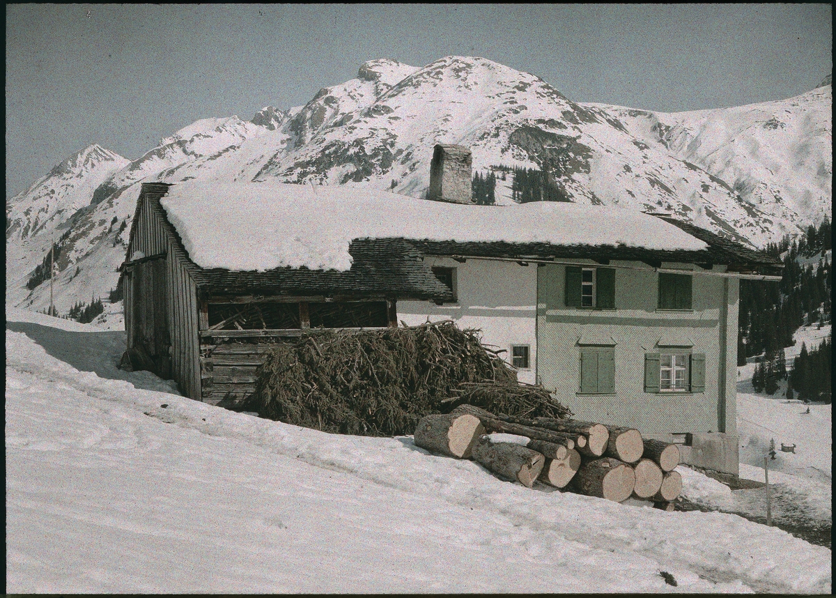 Agfa-autokrom. Exteriör, hus. Bàueruhaus in Lech.