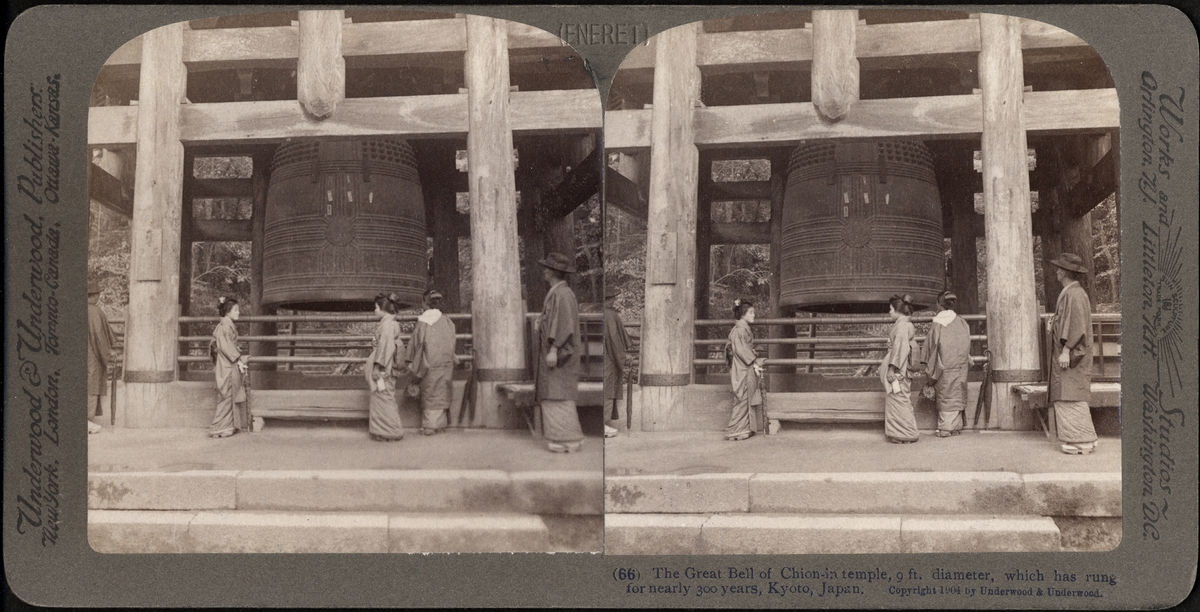 Stereobild av klockan vid The Great Bell of Chion-in temple, Kyoto, vilken har ringt i närmare 300 år.