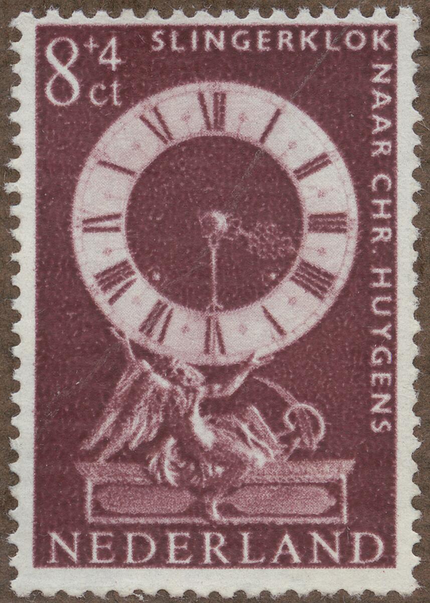 Frimärke från Nederländerna, 1962. Motiv av Skulptur på pendyl av urmakaren Johannes van Ceulen (omkring 1677) -Från Rijksmuseum voor de Geschiedenis der Natuurwetenschappen, Leyden- "Museum serie"
