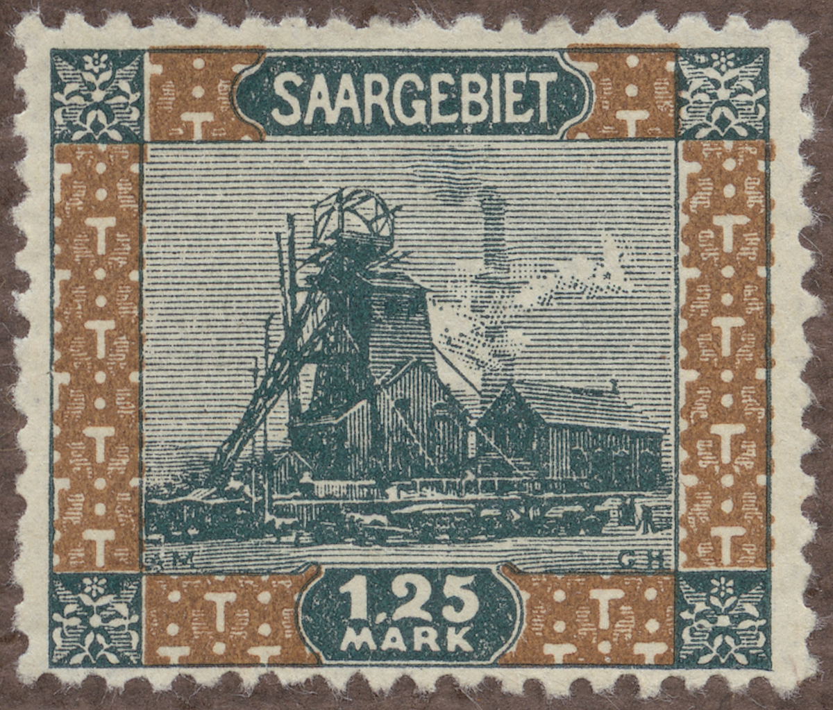 Frimärke från Saar, 1921. Motiv av Gruvlave i Saar