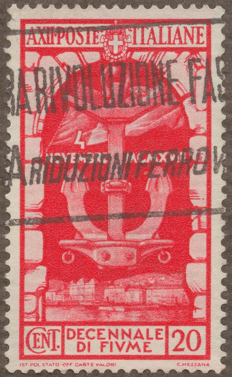 Frimärke från Italien, 1934. Motiv av Ankaret till kryssaren "Emanuele Filiberto" 10-årsminne av annekterandet av Fimue.
