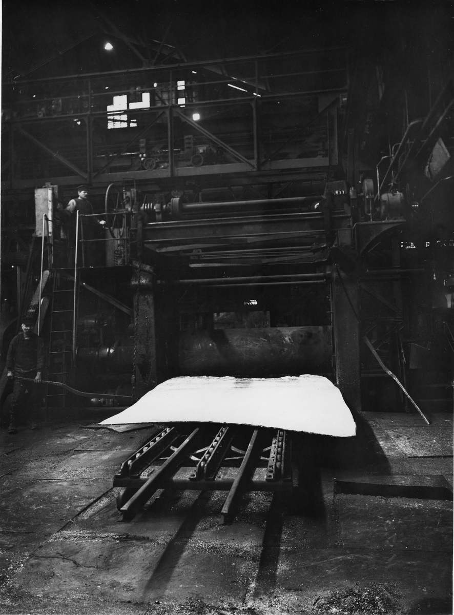 Surahammars Bruk, grovplåtverket. Valsning i 3 meters paret. 1919.