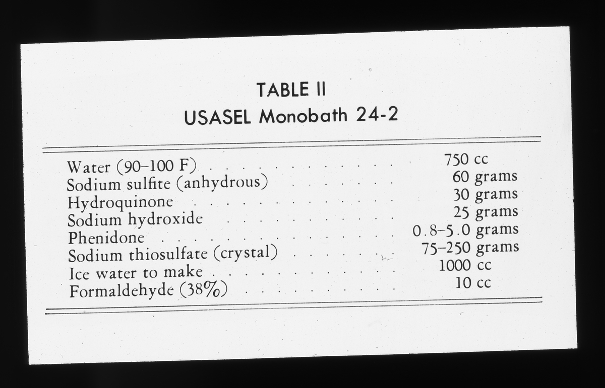Skioptikonbild från Institutionen för fotografi vid Kungliga Tekniska Högskolan. Använd av professor Helmer Bäckström som föreläsningsmaterial. Bäckström var Sveriges första professor i fotografi vid Kungliga Tekniska Högskolan i Stockholm 1948-1958.
