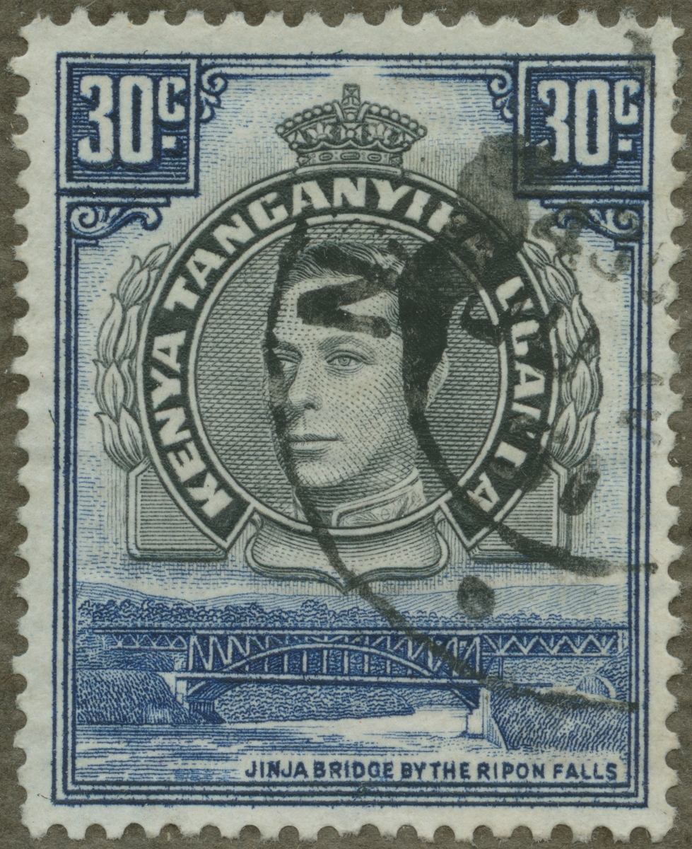 Frimärke från Kenya-Uganda-Tanganyika, 1938. Motiv av "Djindja"-bron över fallen vid Ripon