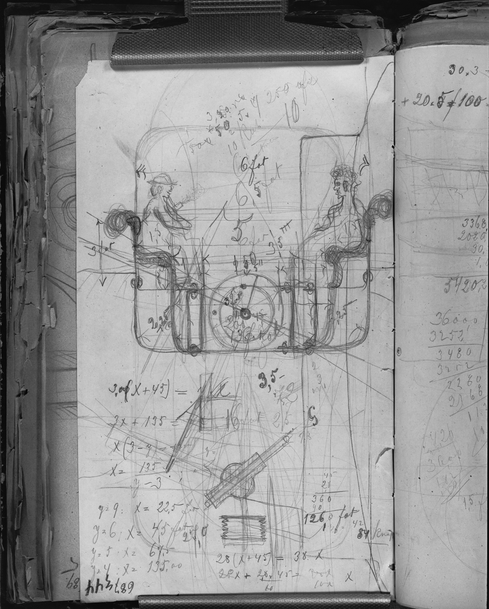 En av Gustaf de Lavals skisser för mjölkseparatorn, troligen från 1877.Denna skiss visar upp många typiska drag för en skiss gjord av den gamla stammens ingenjörer.Samma skiss innehåller både ett helhetskoncept och en mer utarbetad detalj (visande på designprocessens ständiga pendling mellan helhet och detalj).Skissandet är understött av skissmässiga beräkningar >> som sällan rymmer mer än de fyra räknesätten.Det lekfulla sökande draget i skissen blir extra tydligt med gubbarna sttande på själva rotorn.Även linjen visar med sin flyhänthet ett sökande drag.De Laval är inte rädd för att kludda...