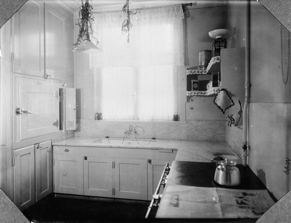 Elektrolux kylskåp, inbyggt. köksinteriör.
