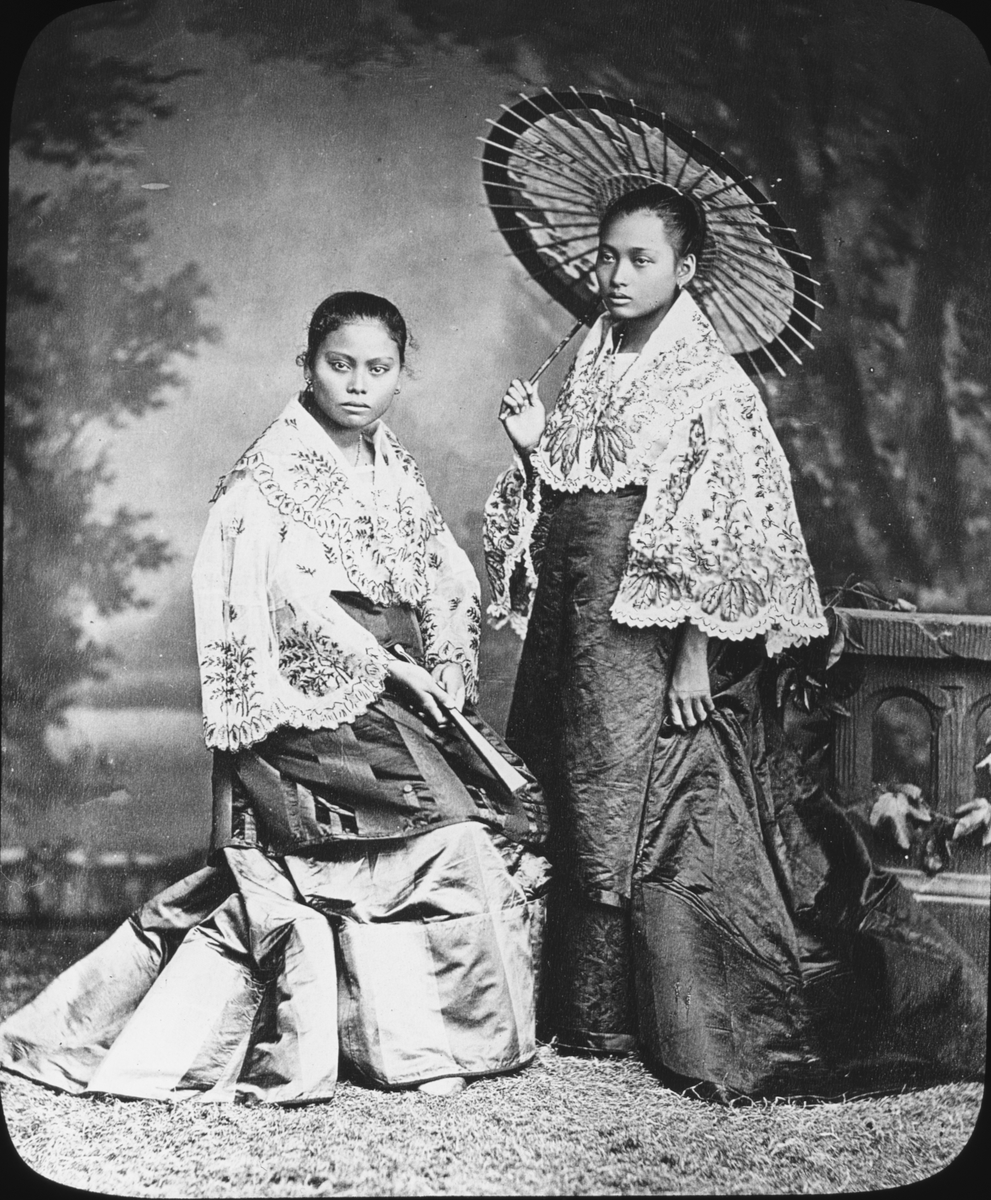 Skioptikonbild. Porträtt av två kvinnor från sydostasien.
