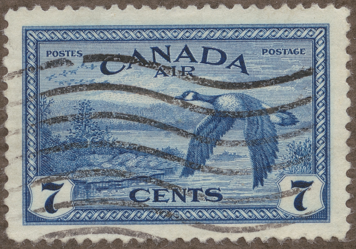 Frimärke från Canada, 1946. Motiv av Flygande vildgås Symboliserande postflyget