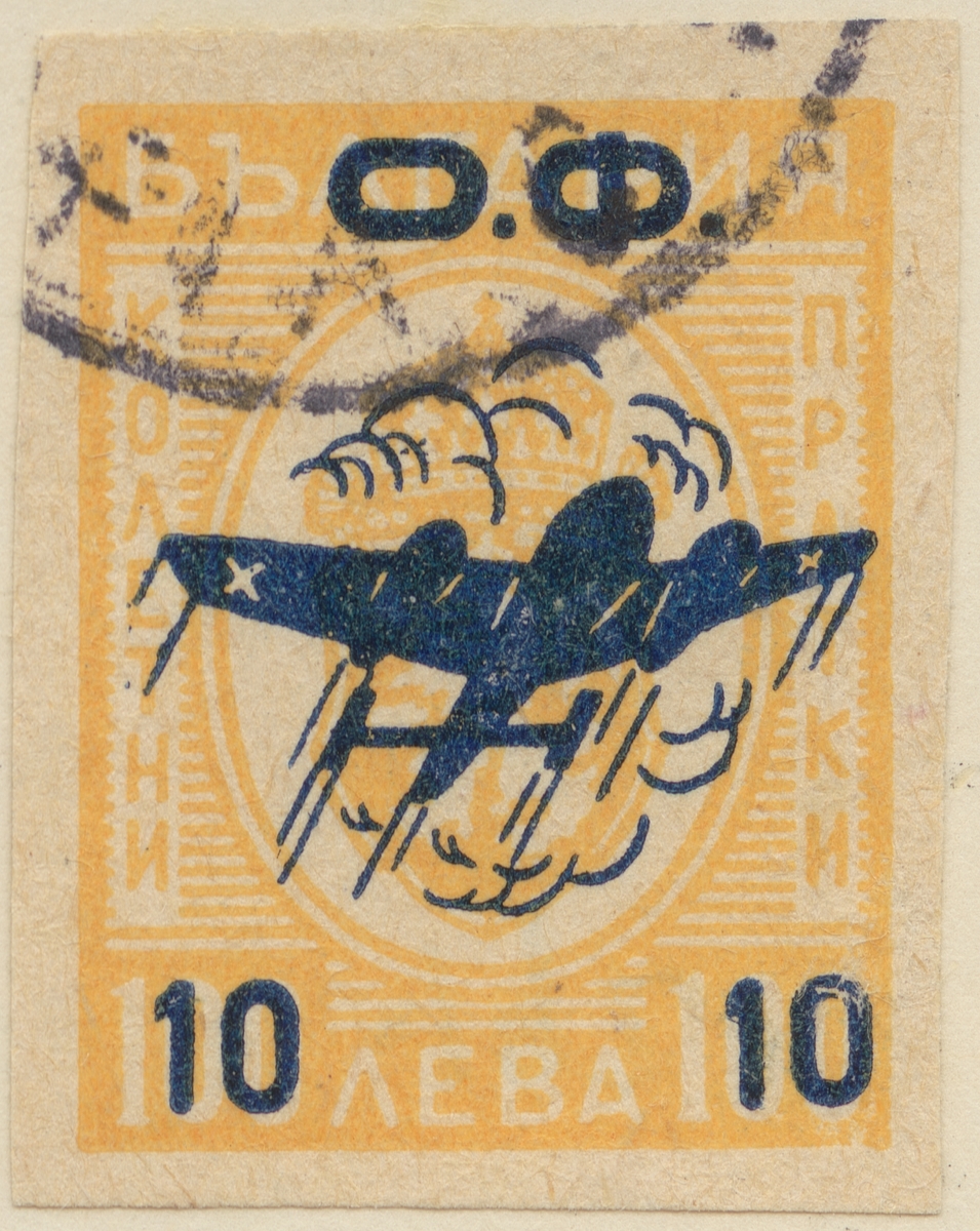Frimärke från Bulgarien, 1946. Motiv av Stiliserat tvåmotorigt monoplan