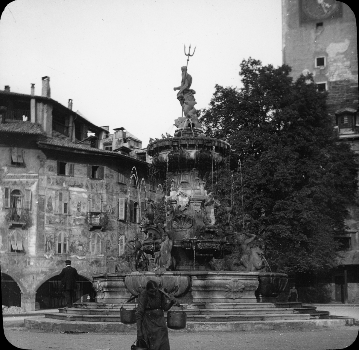 Skioptikonbild med motiv av Neptuns brunn i Trient.