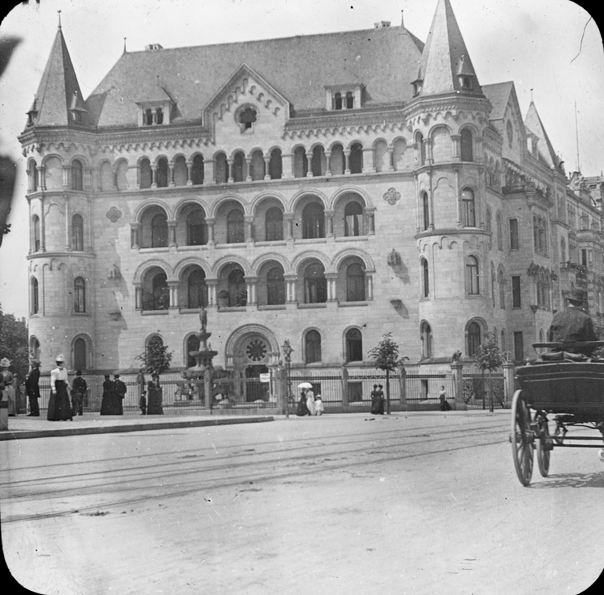 Skioptikonbild med motiv från Berlin: Romanisches Haus, mellan Kurfürstendamm till vänster och Kantstraße.