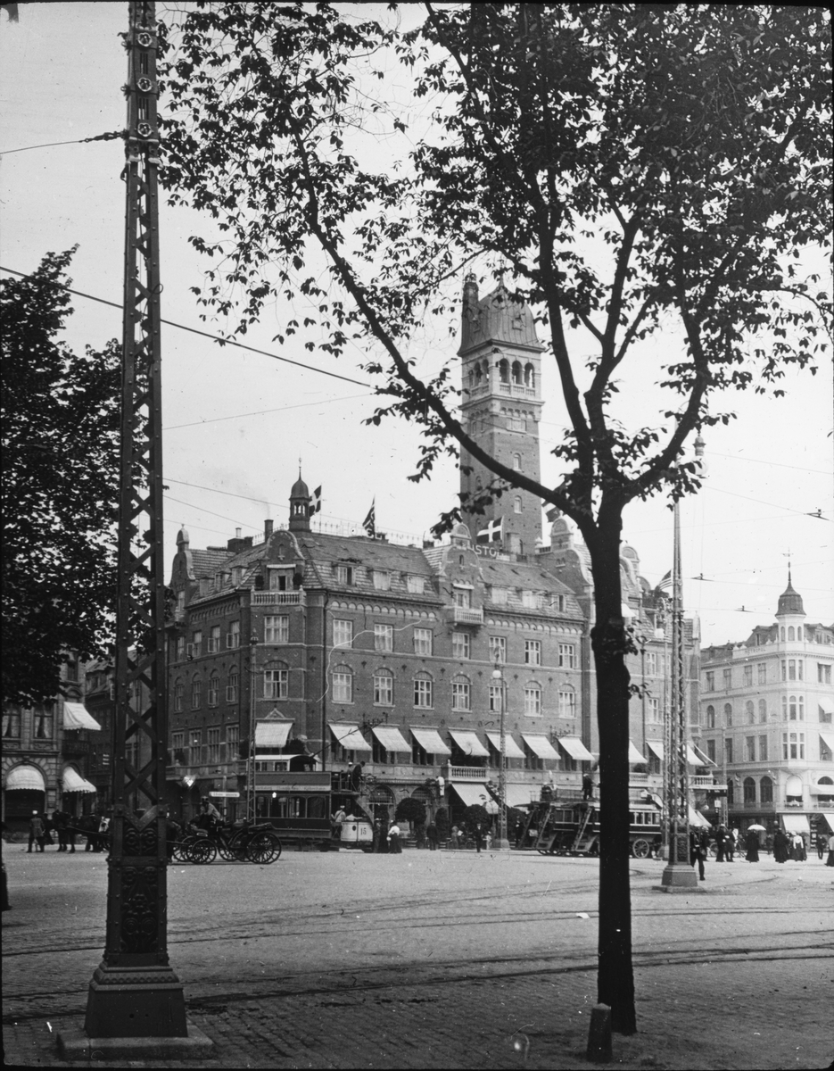Skioptikonbild med motiv från torg. Möjligen i Köpenhamn.