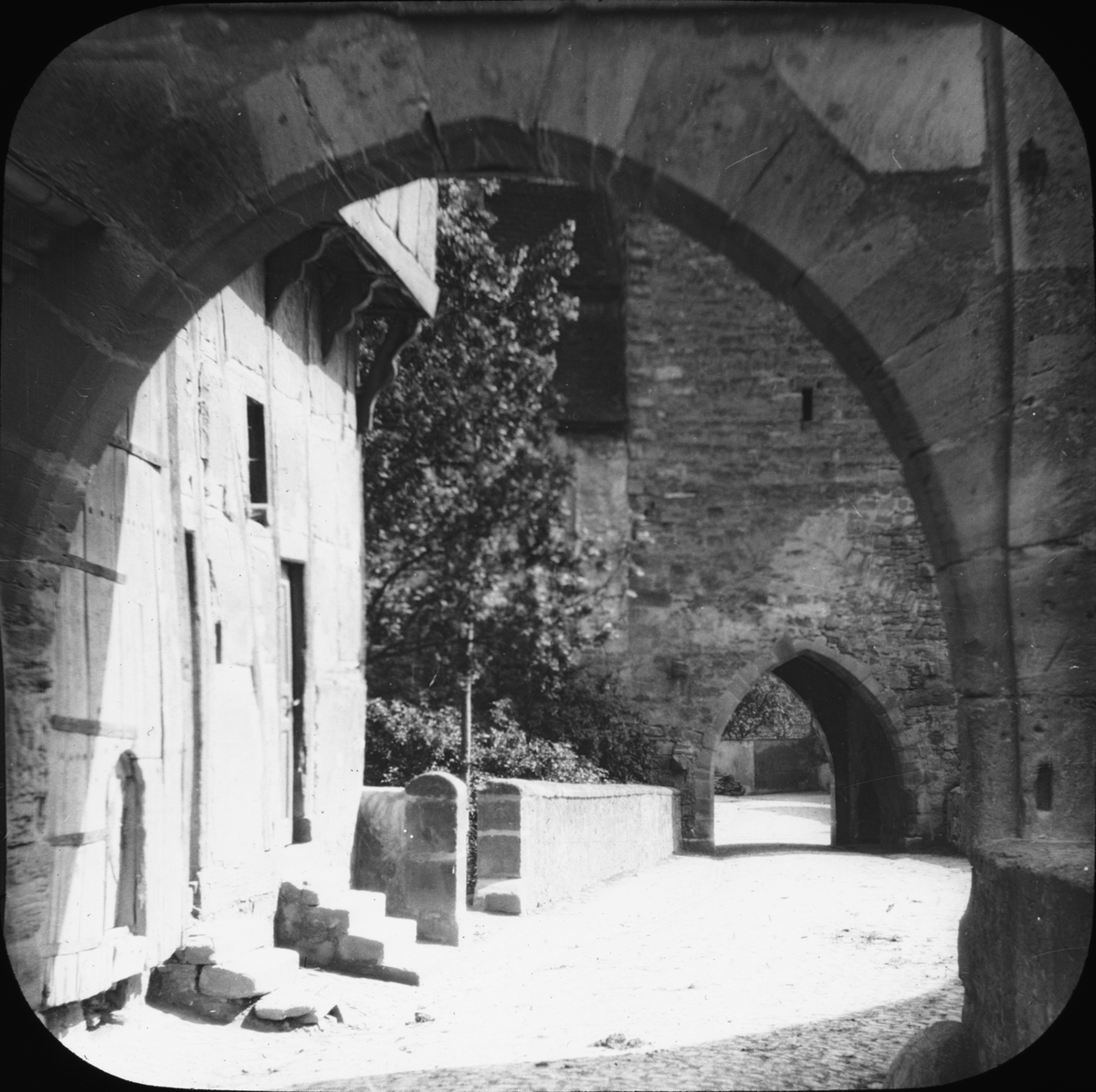 Skioptikonbild med motiv av valvport i stadsmuren, Iphofen.