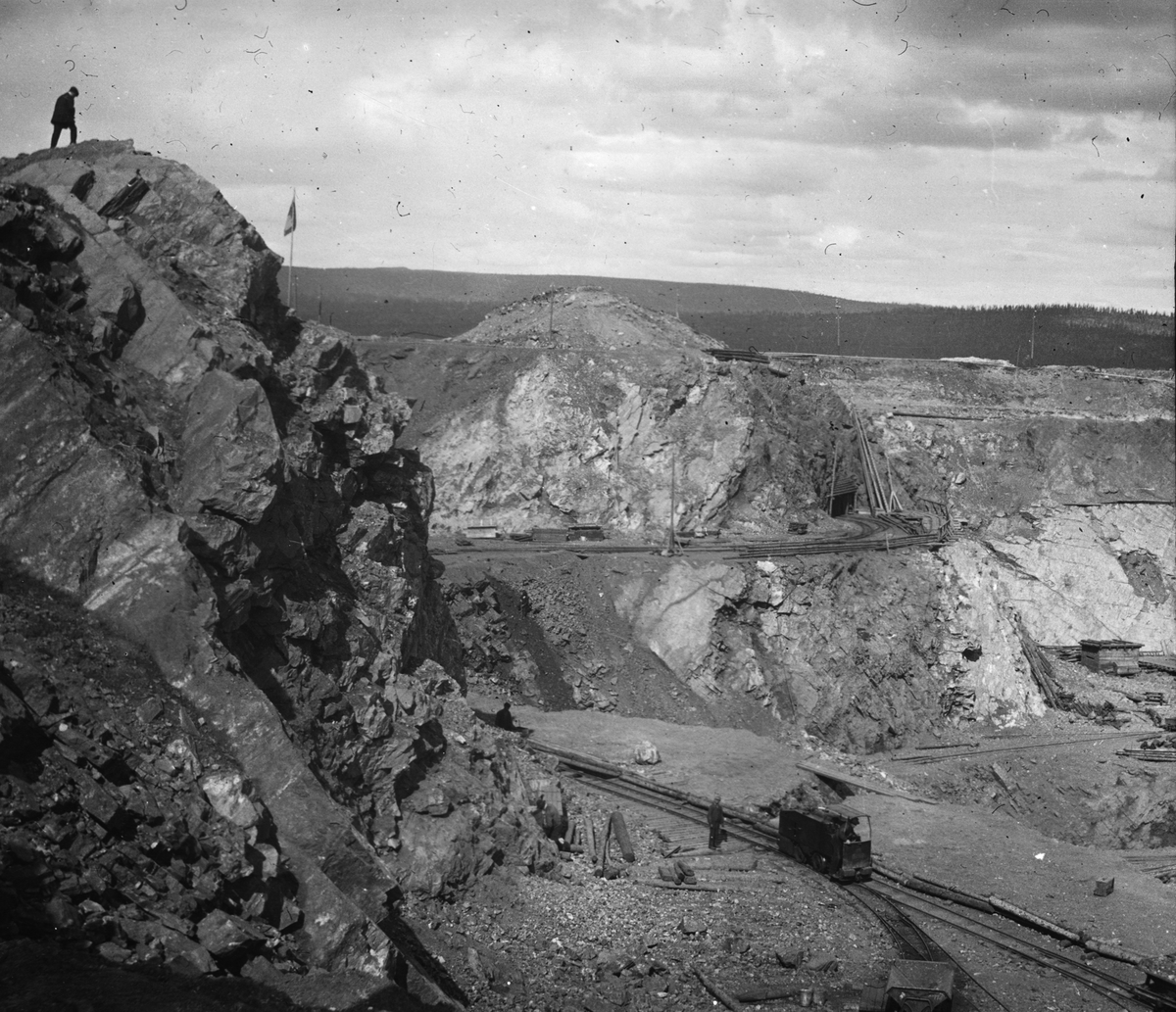 Skioptikonbild med motiv från yrkesinspektionens undersökningar på olika arbetsplatser. Malmbrytning.