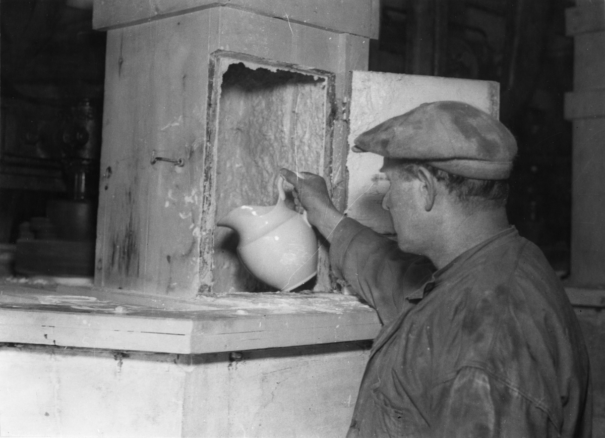 Gustavsbergs Porslinsfabrik. Prov tages ur blandmaskinen.