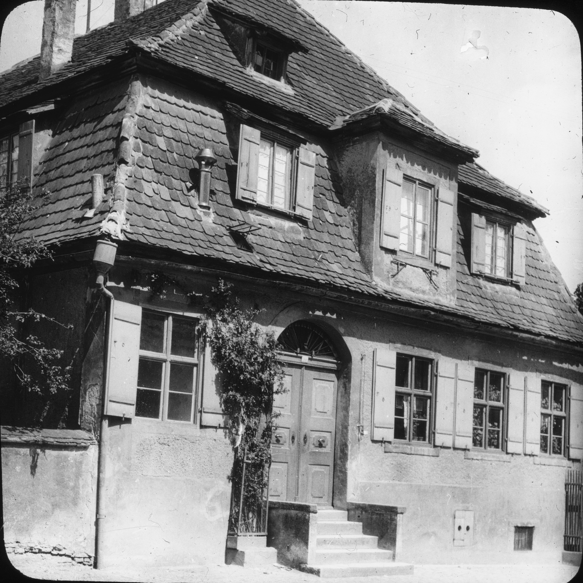 Skioptikonbild med motiv av okänt hus i Dinkelsbülh.