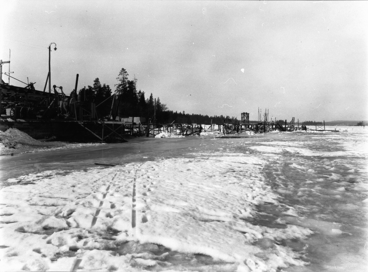 Byggherre: Byggnadsaktiebolaget Contractor, Stockholm. Den 200 m långa och 13,5 m breda pirbyggnaden i Vallvik för Marmaverken var imponerande också med avseende på det stora vattendjupet (10 m). Arbetsbyggnadplats (pir).