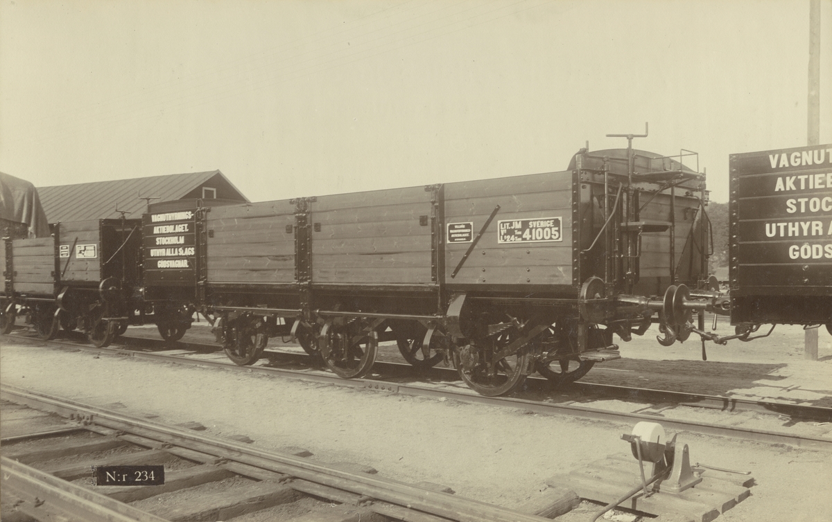 Tågvagn. Ballastvagn apterad till J-vagn. Ur album: Vagnfabriks Aktiebolaget i Södertälge.