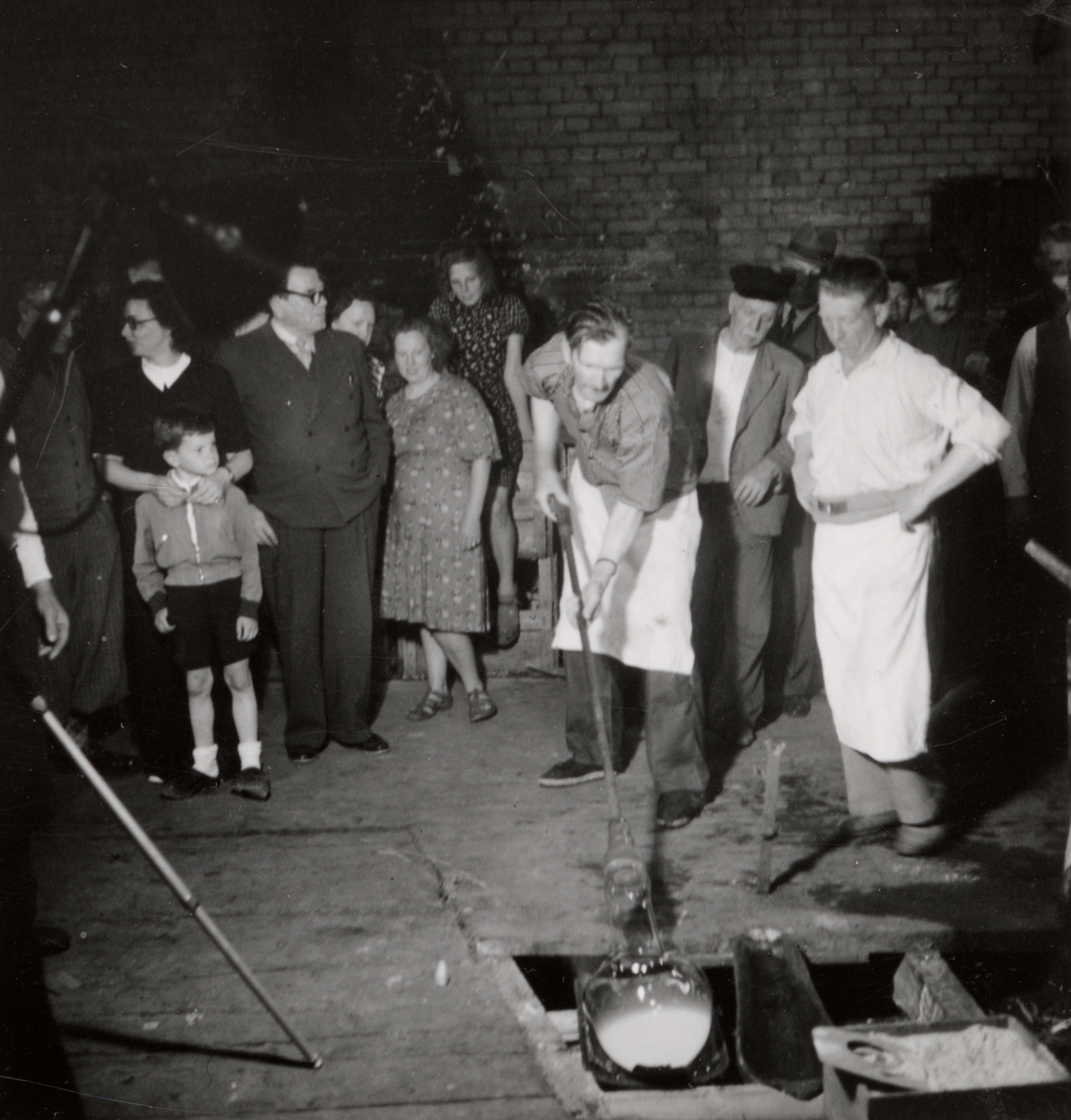 Fönsterglasblåsning i samband med filmning den 12 juni 1941. Kulan färdig.