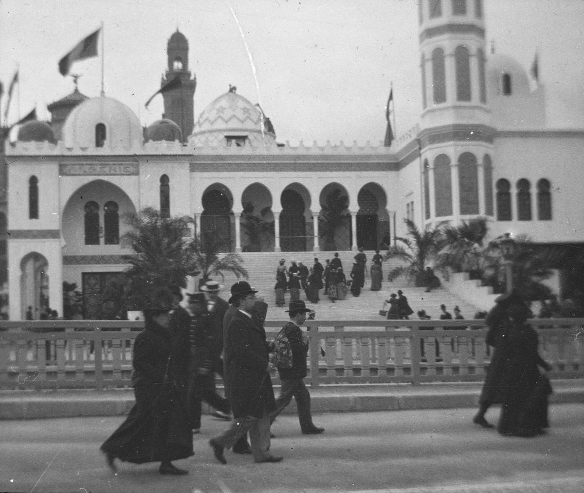 Skioptikonbild med motiv från Paris. Brittiska kolonierna, framför Palais du Trocadéro vid världsutställning Exposition Universelle, 1900.