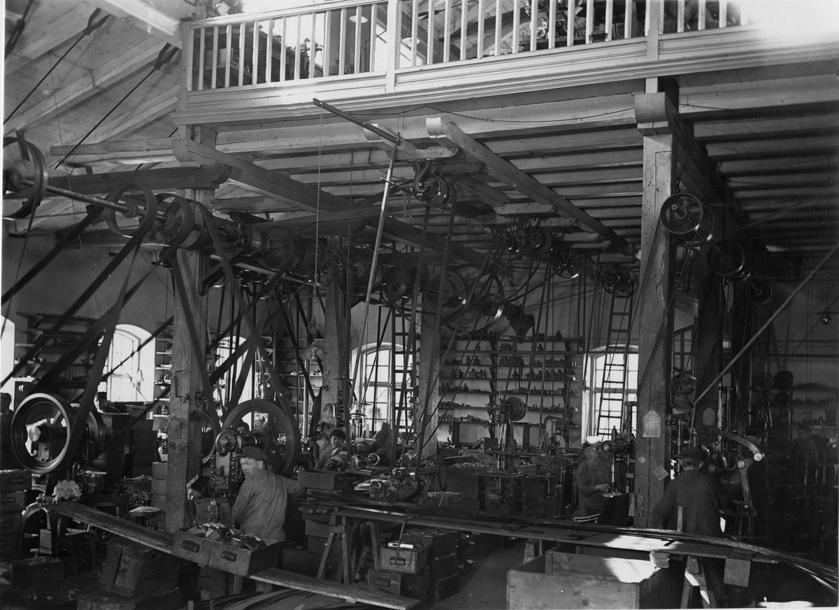 Interiör av gångjärnsfabriken. Boxholms bruk.