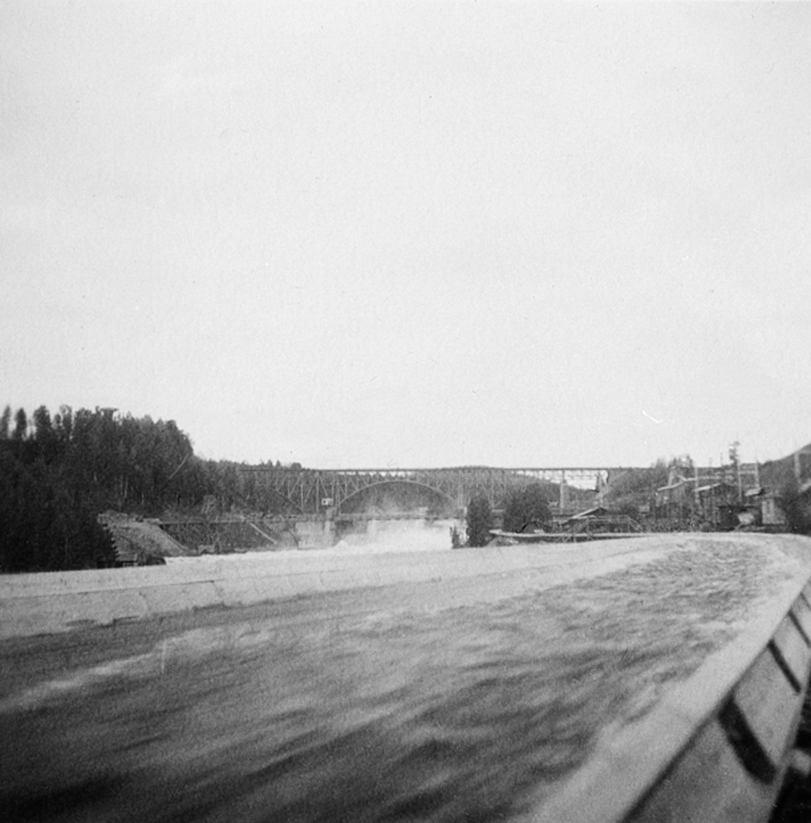 Forsmo kraftverk. Vattenränna med forsen i bakgrunden.