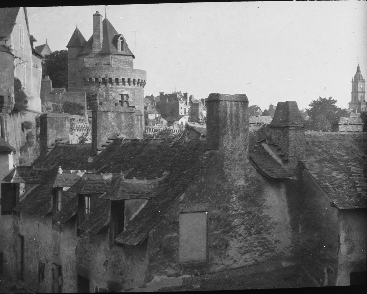 Skioptikonbild med motiv från Vannes med tornet Tour de Connétable.