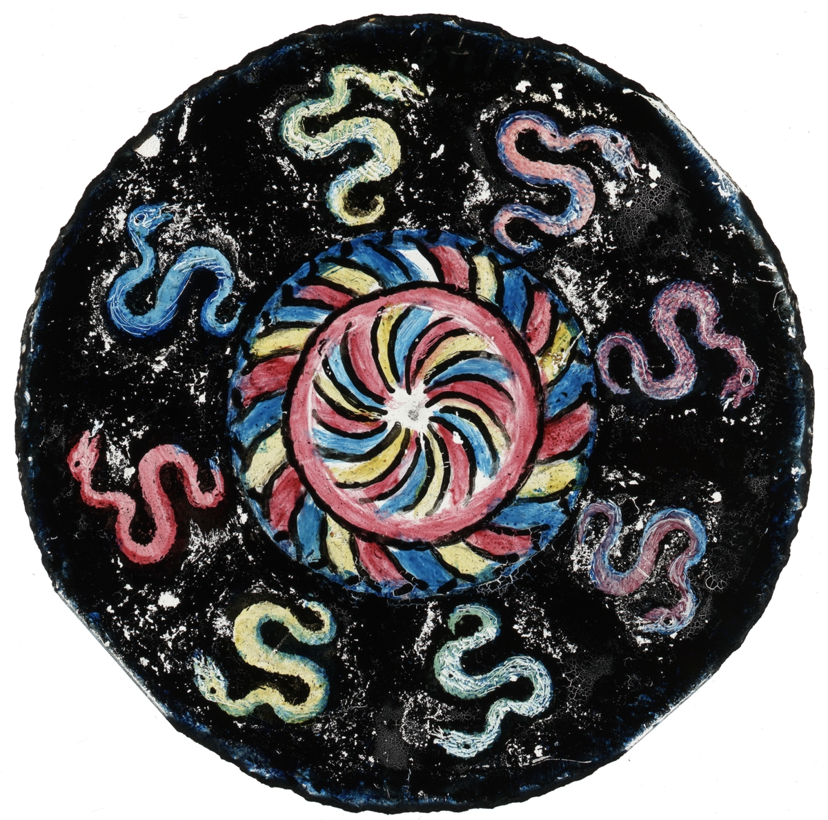 Colorerad bild på glas för Skioptikon/Laterna magica.