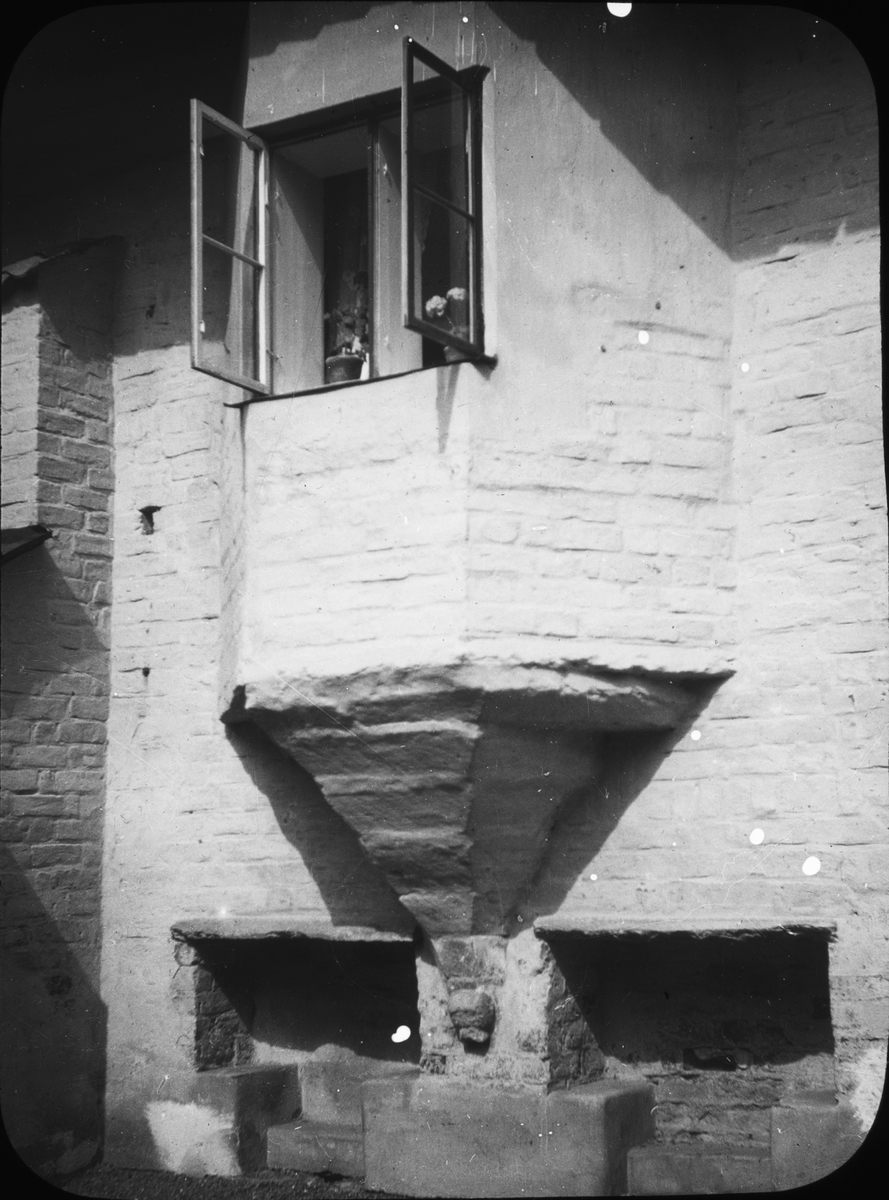 Skioptikonbild med motiv av burspråk på hus Vadstena.