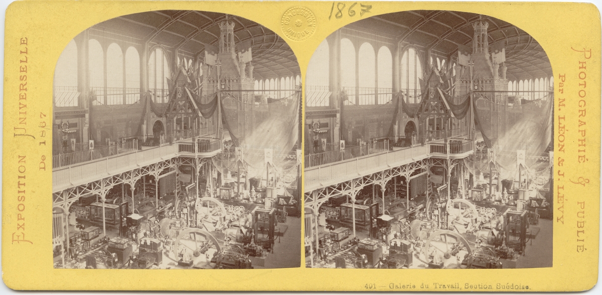 Stereobild med motiv av svenska paviljongen i "Galerie du Travail" på Världsutställningen i Paris 1867.