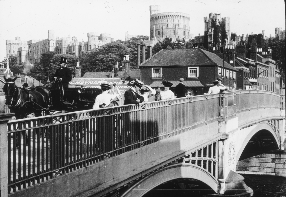 Skioptikonbild med motiv från Windsor med Windsor Castle i bakgrunden.