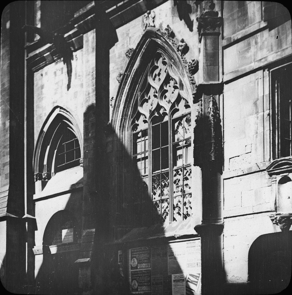 Skioptikonbild med motiv från Sigurd Curmans resor i Europa. Okänd byggnad, okänd stad. Möjligen katedral.