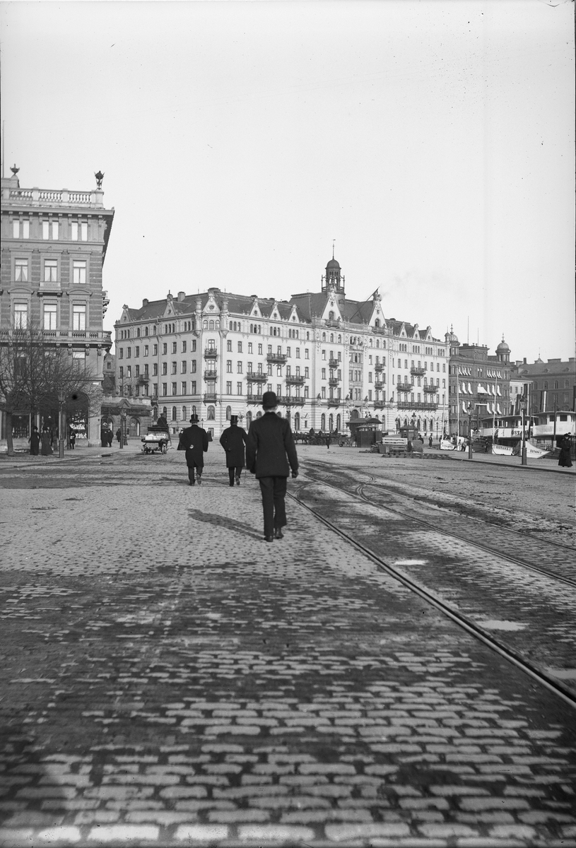 Strömgatan, Blasieholmshamnen, Stockholm, med Grand Hotell i bakgrunden.
