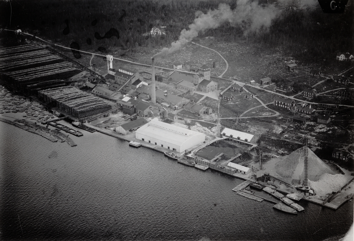 Flygfotografi över Nyhamns Cellulosa, Medelpad.