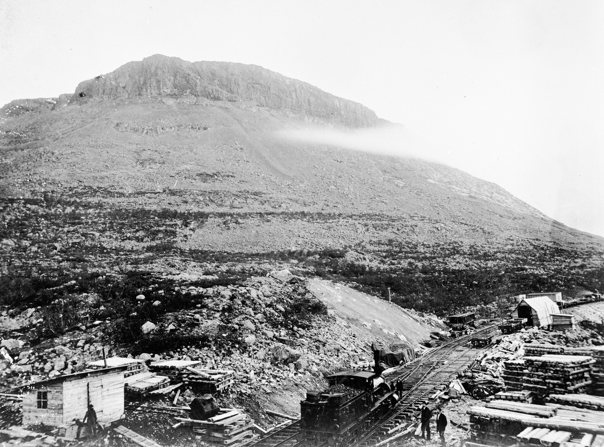Kajsapakte. "Sedt från gamla rälstippen" vid Kajsamirmi. Bygge av Riksgränsbanan.