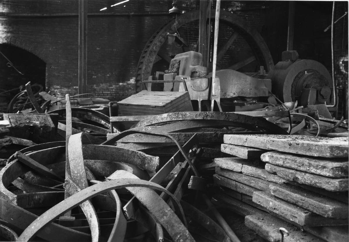 Titel: Vallonsmedjan vid Leufsta Bruk. Rivningen i mars 1932.