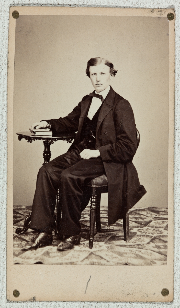 Undervisningsmaterial. Exempel på äldre fotografiska förfaranden. Porträtt av okänd man. Visitkort.