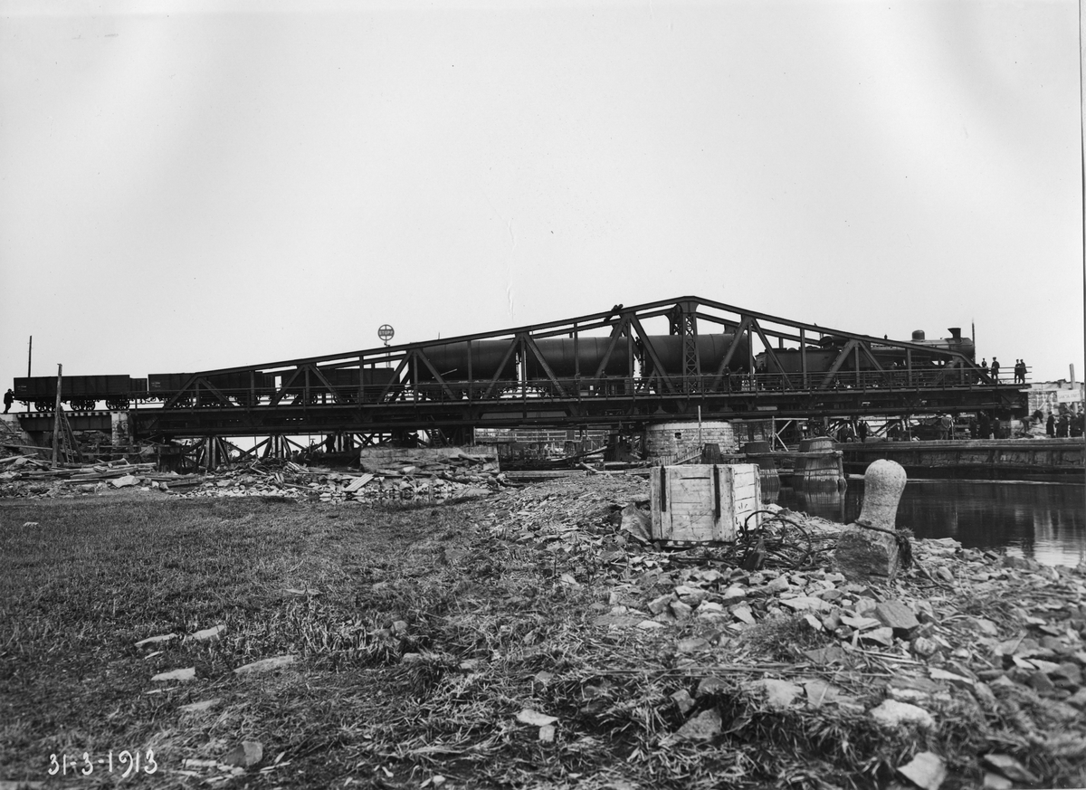 Ombyggnad av Trollhätte kanal, Trollhättan. B.J:s bro provbelastas.