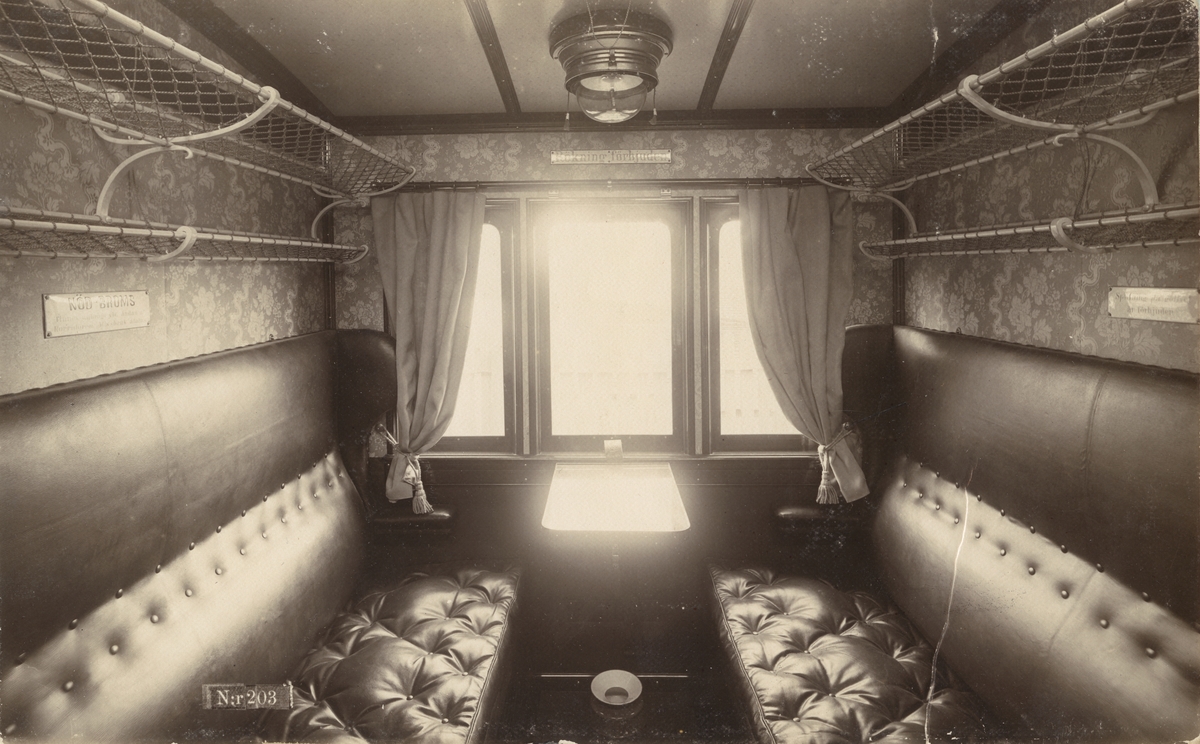 Tågvagnskupé. 1:a klass. Ur album: Vagnfabriks Aktiebolaget i Södertälge.