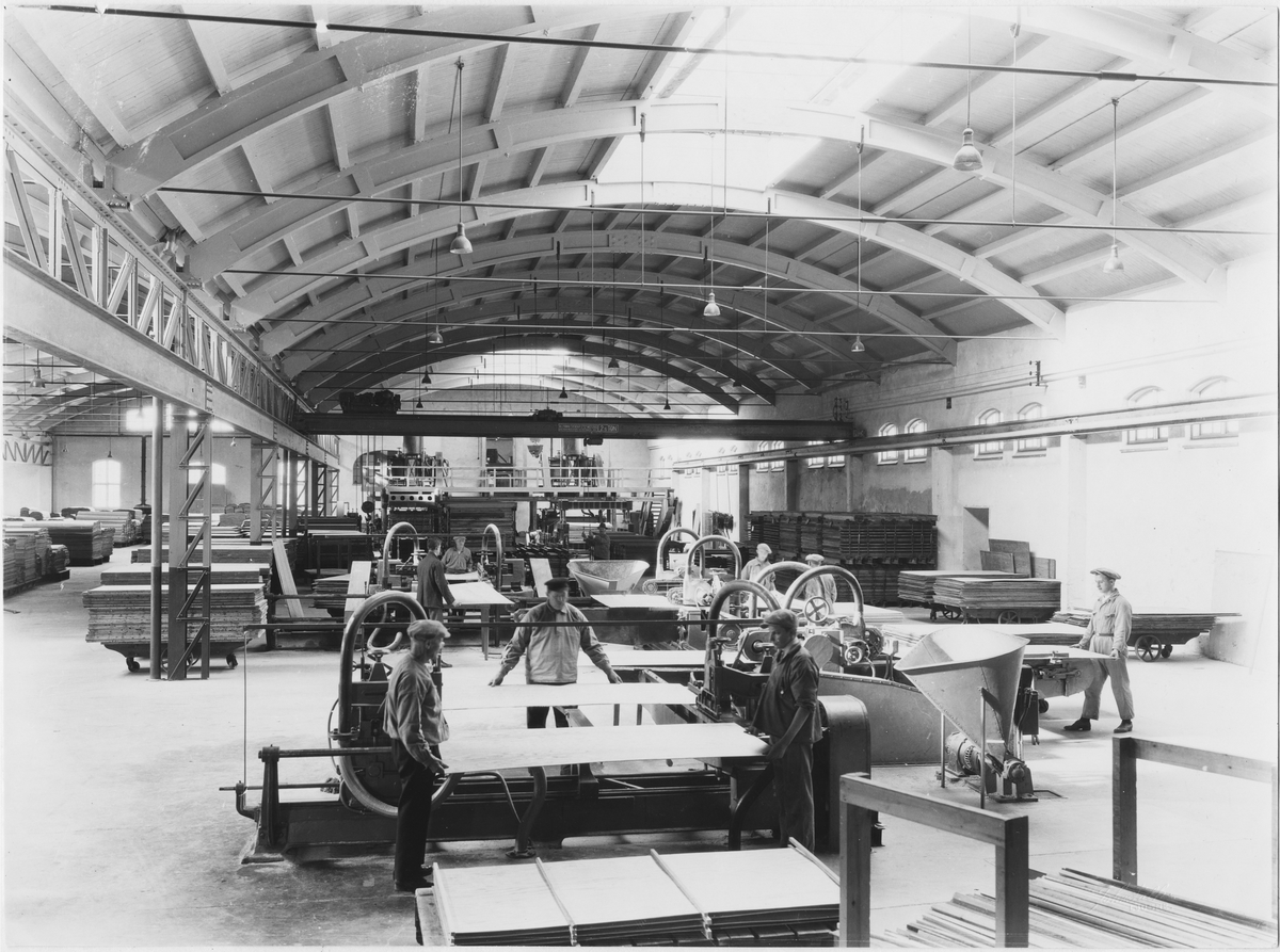 Titel: Plywoodfabriken, Ljusne- Woxna Aktiebolag. Byggnaden uppförd av AB Bärande Träkonstruktioner, Töreboda.