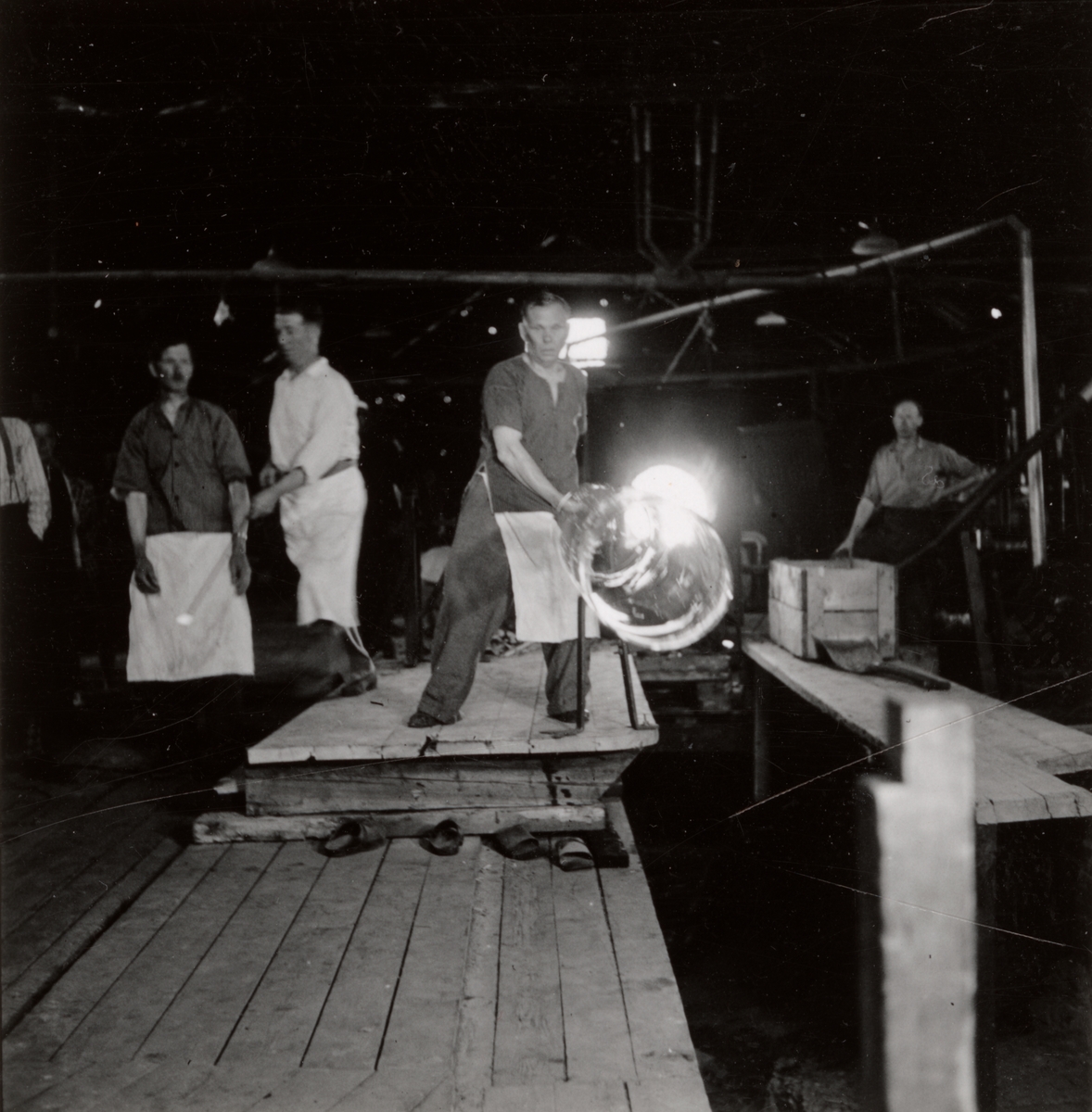 Fönsterglasblåsning i samband med filmning den 12 juni 1941. Valsen färdig att bära ned på knäckan.