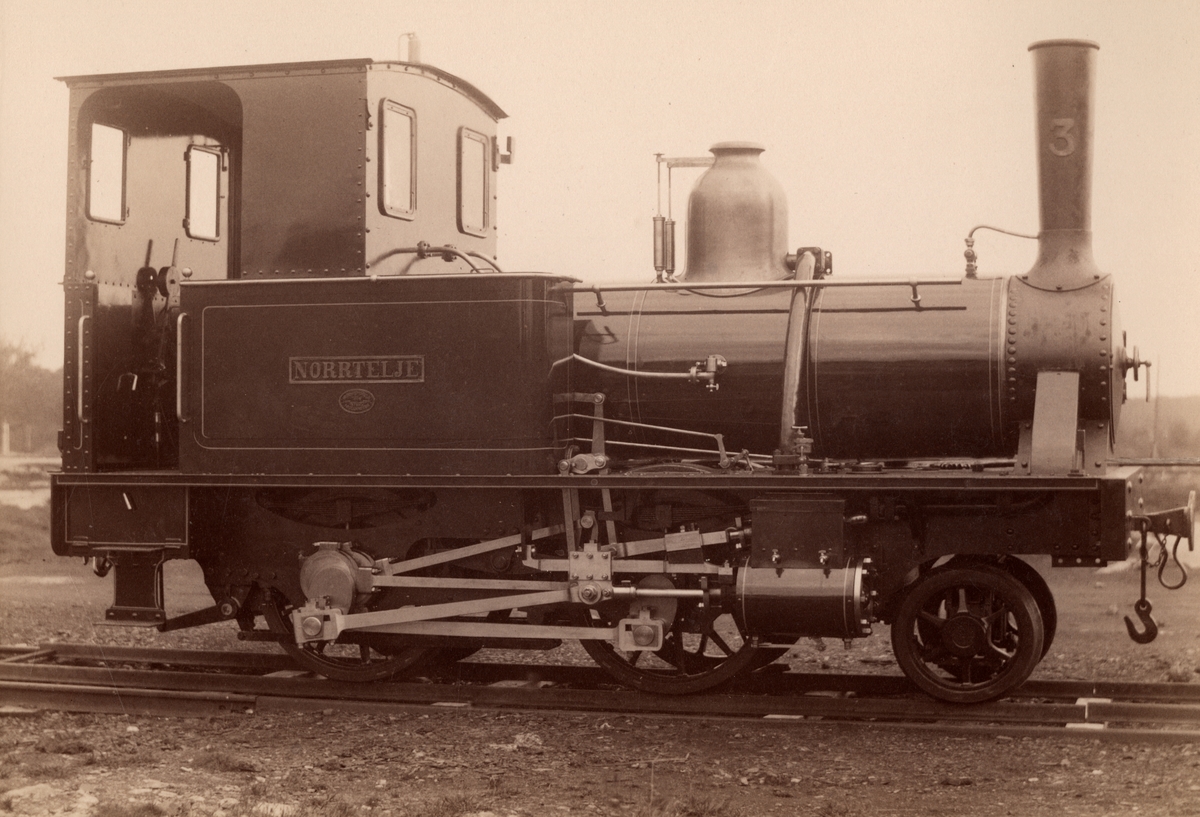 "Norrtelje". Lok nr. 3 vid LNJ. Tillverkat vid Nydqvist & Holm, trollhättan, 1884. No 202.
